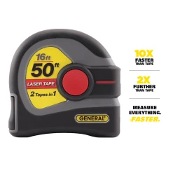 - 2-in-1 design: 50′ laser with 16′ tape measure