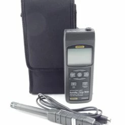 - Measures ambient temperature, relative humidity (RH), and dew point and wet bulb temperatures