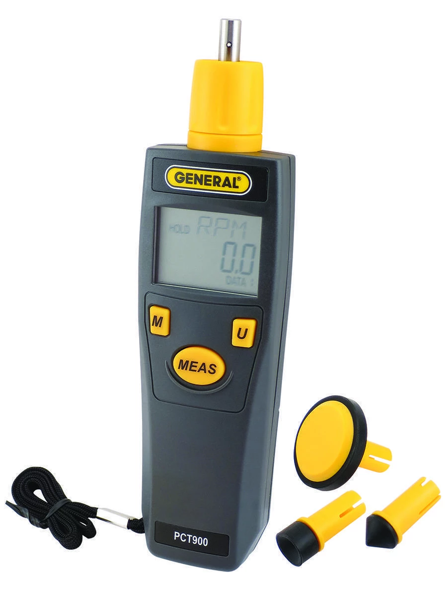 The #PCT900 tachometer measures rotational speeds using a contact (wheel) or non-contact (laser) technique. It’s ideal for testing and troubleshooting motors, engines, gearboxes, fans and compressors.