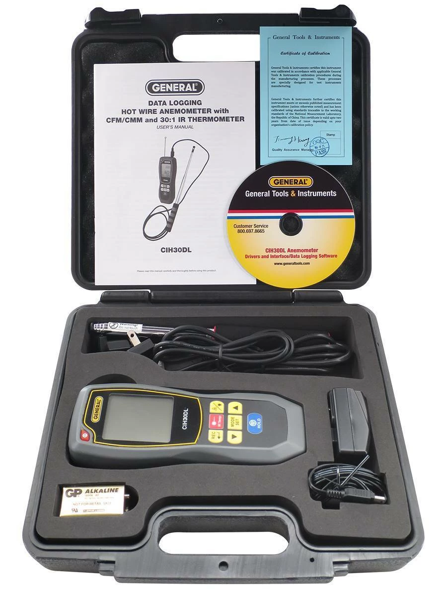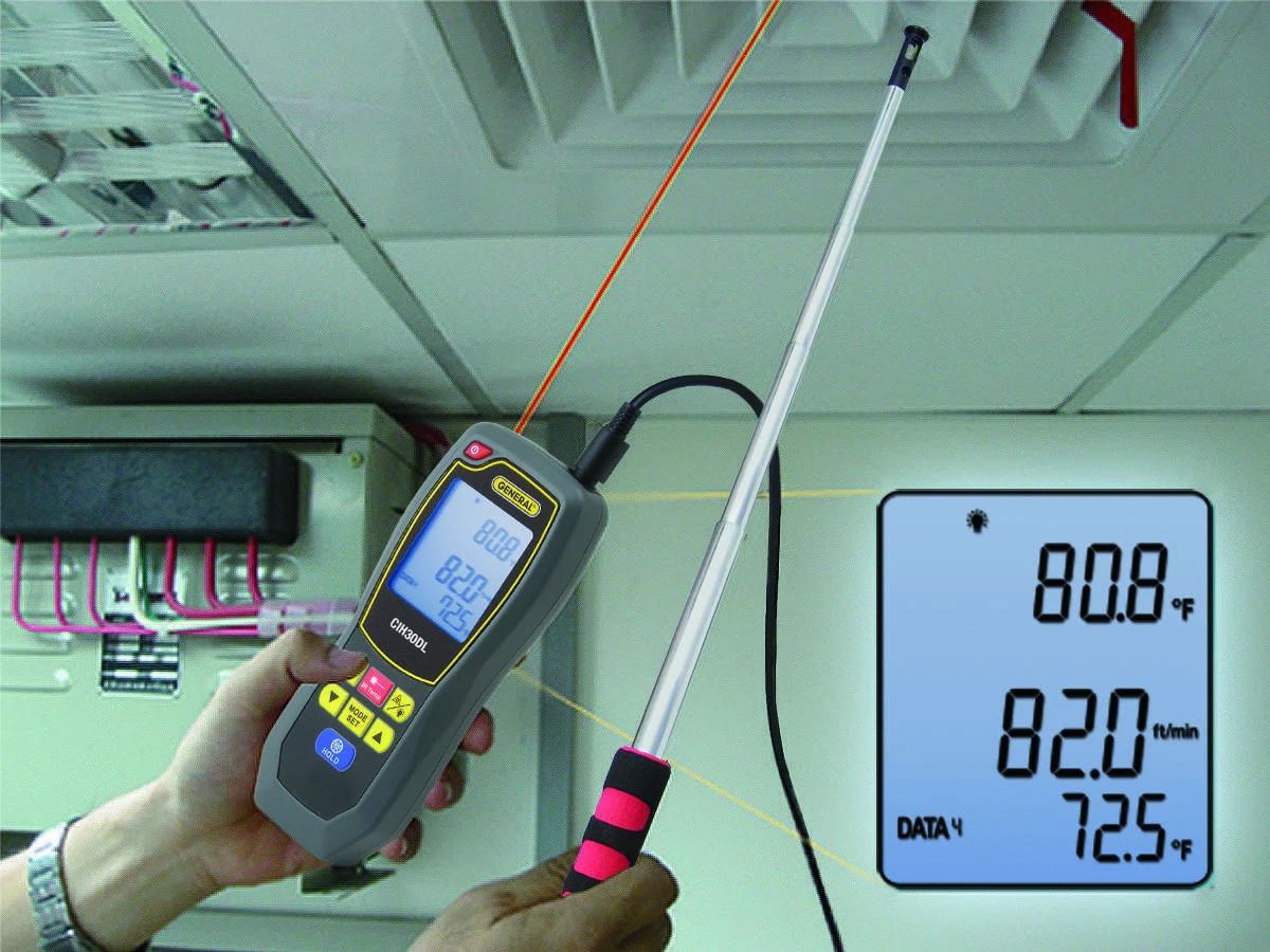 The #CIH30DL data logging anemometer is ideal for low-airflow applications. It can detect breezes as gentle as 40 ft./min (0.2 m/sec).