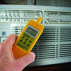 The large digital display shows Relative Humidity (RH) as a percentage + ambient, Dew Point (DP) and Wet Bulb (WB) temperatures in °C or °F. The digital tool has many built in features including min/max memory with reset key, min/max memory + data hold, auto off and a low battery indication. It’s easy to use with no twirling or charts necessary. Included with the tool is a protective cap with pocket clip, user manual and 2 AAA batteries.