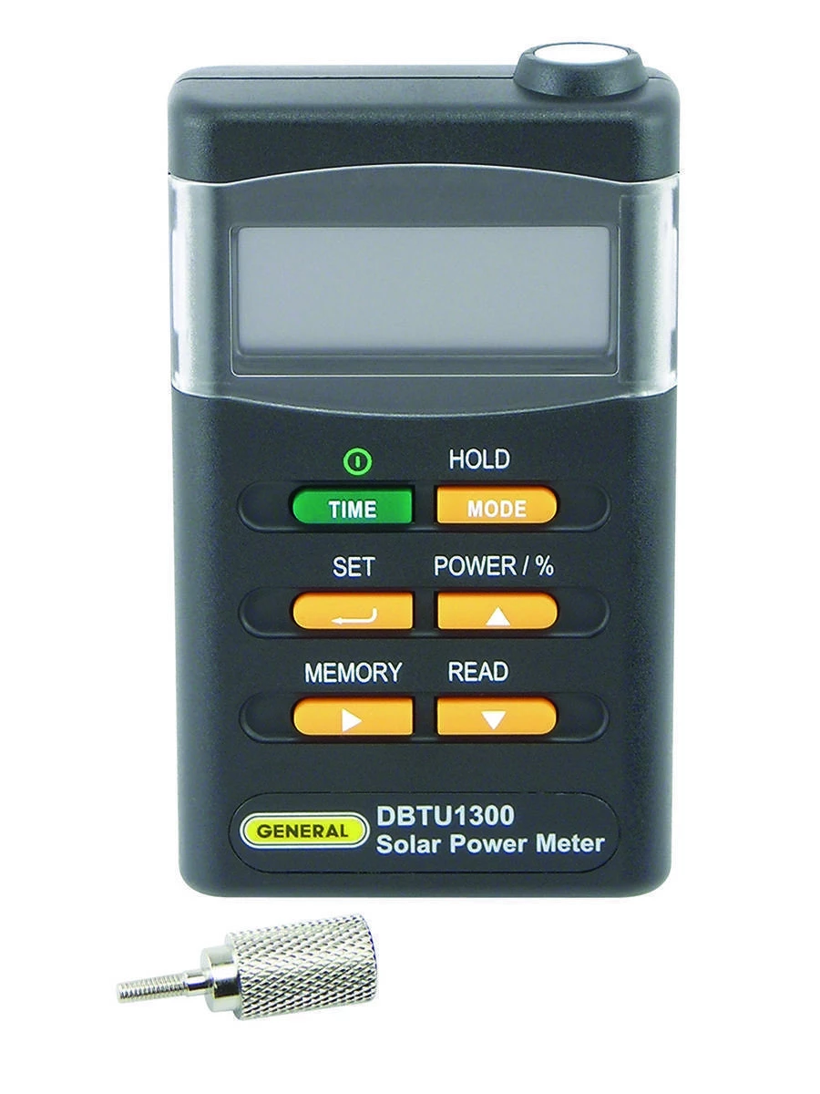 - Measures and displays solar power intensity in units of W/m2 or Btu/(ft2 x h)