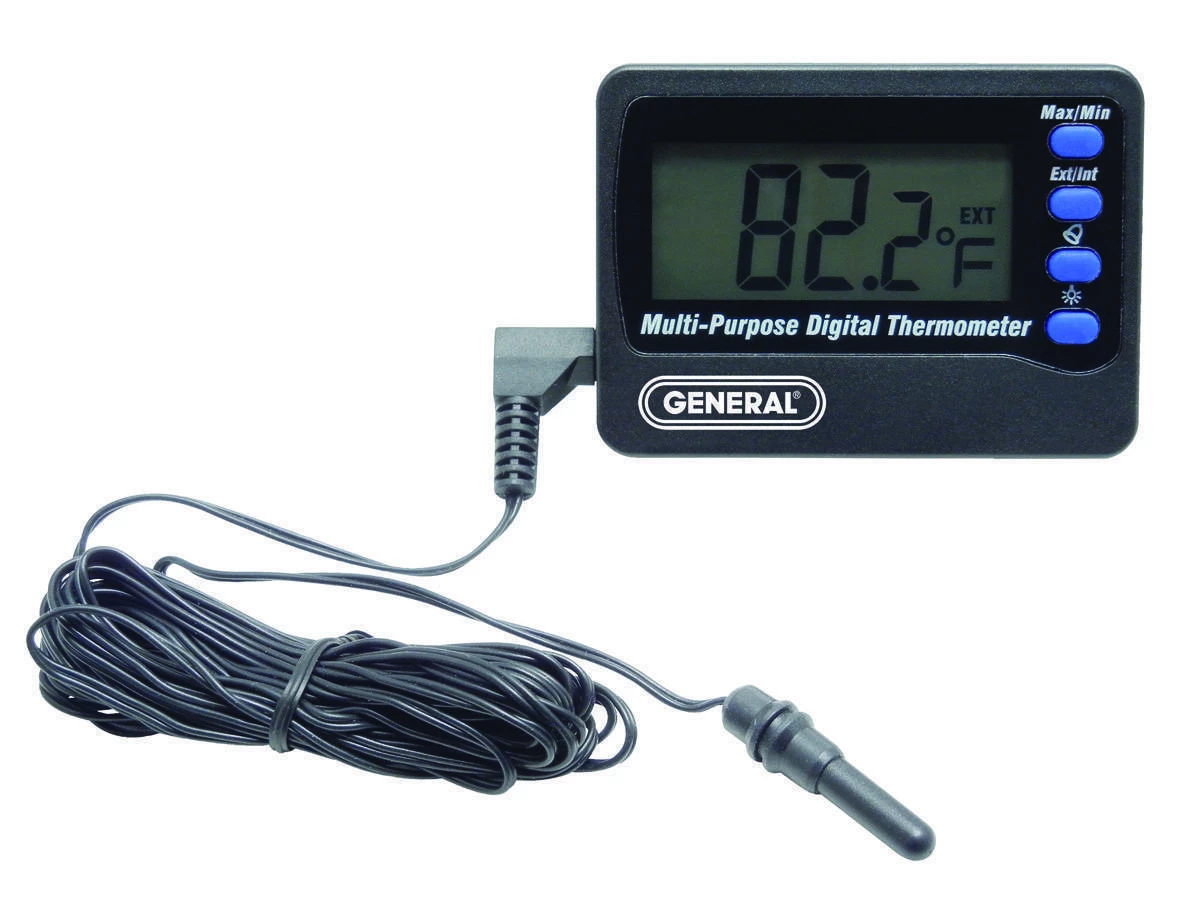 The #AQ150 Inside/Outside Thermometer with Waterproof Probe is ideal for digitally monitoring indoor/outdoor temperatures. Its probe also suits the thermometer for aquarium and aquaculture applications.