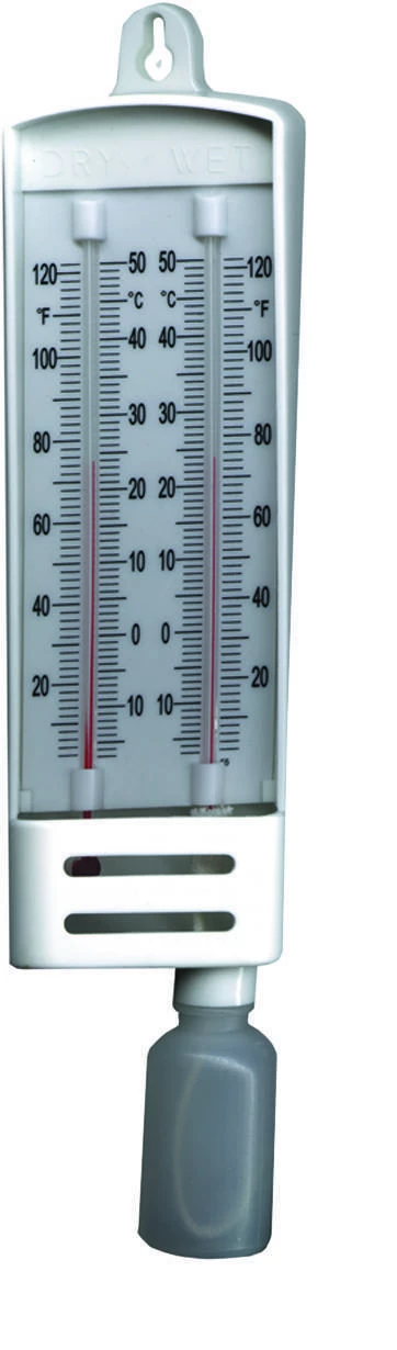 The #MH120 Mason’s Hygrometer measures and displays the wet bulb and dry bulb temperatures. A conversion chart derives the relative humidity from the two values.