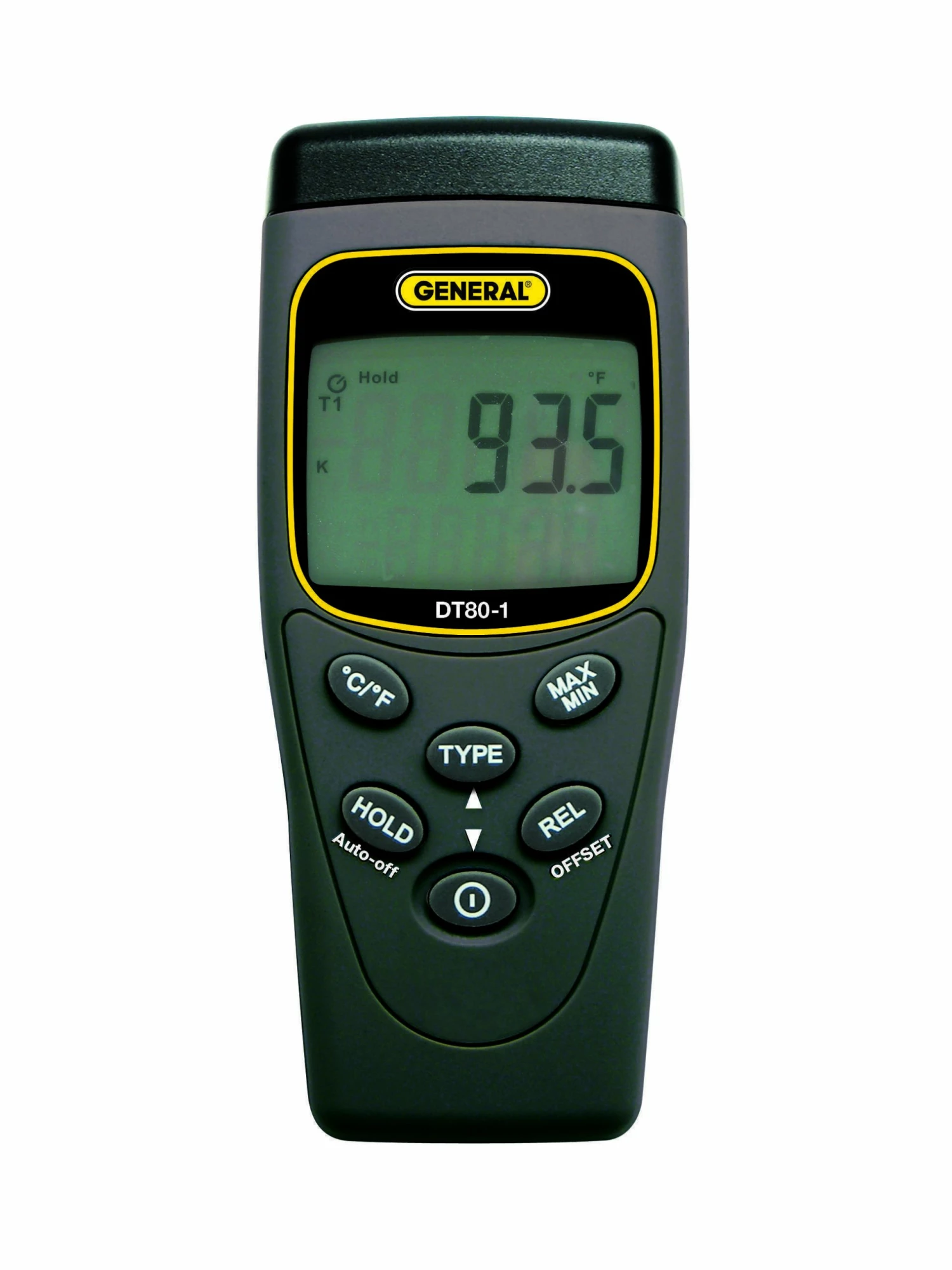 The #DT80-1 One-Channel Types “K” and “J” Thermocouple Thermometer is ideal for measuring very high or low temperatures in a commercial or industrial environment.