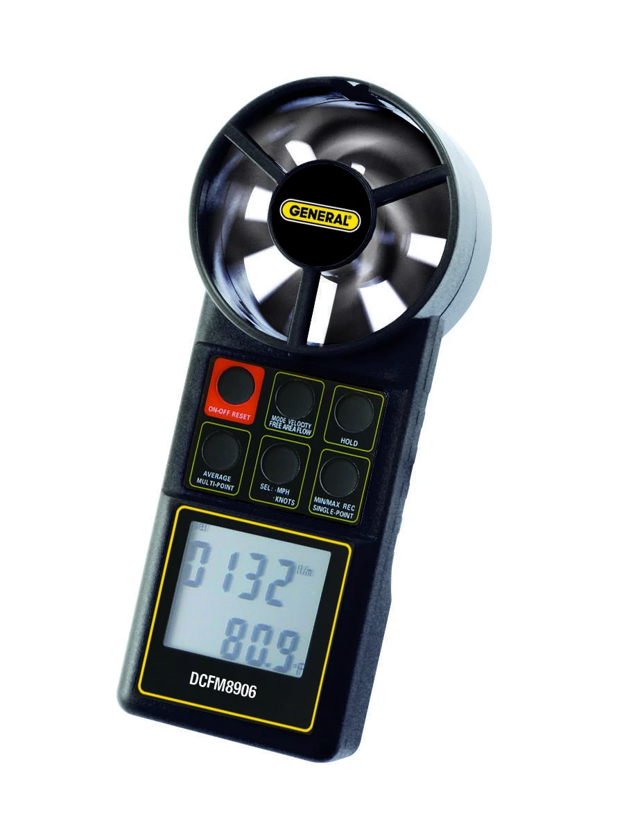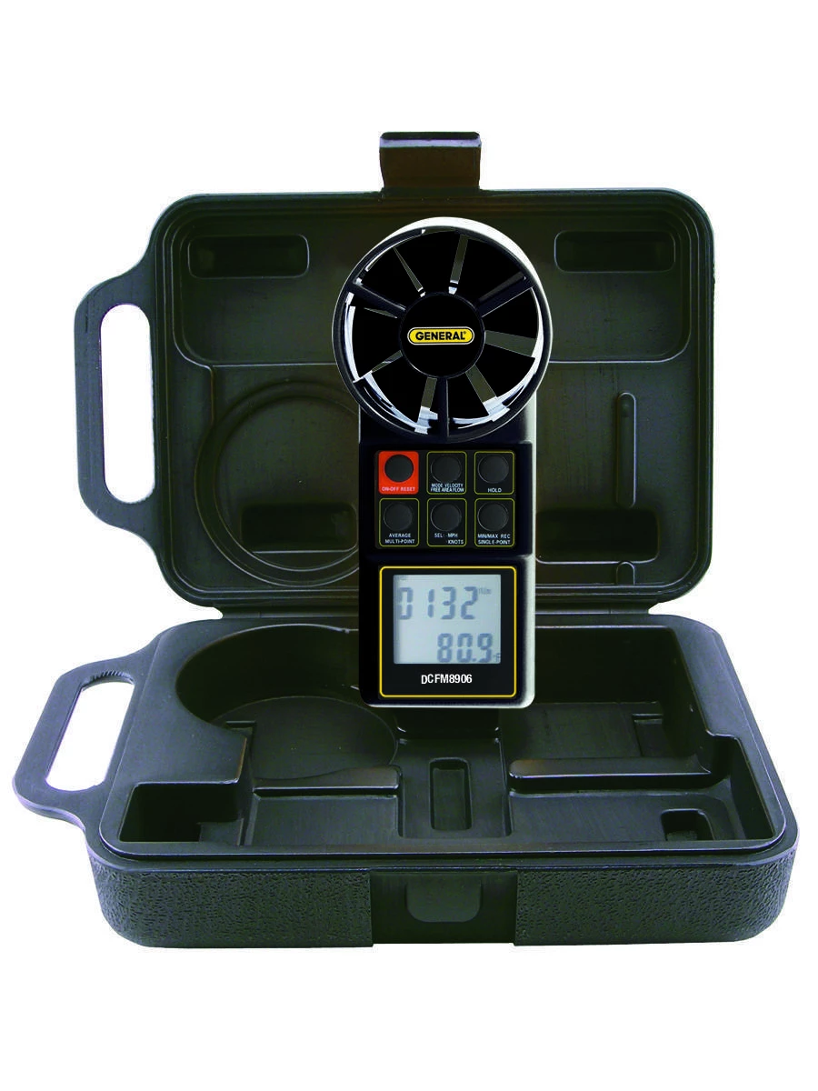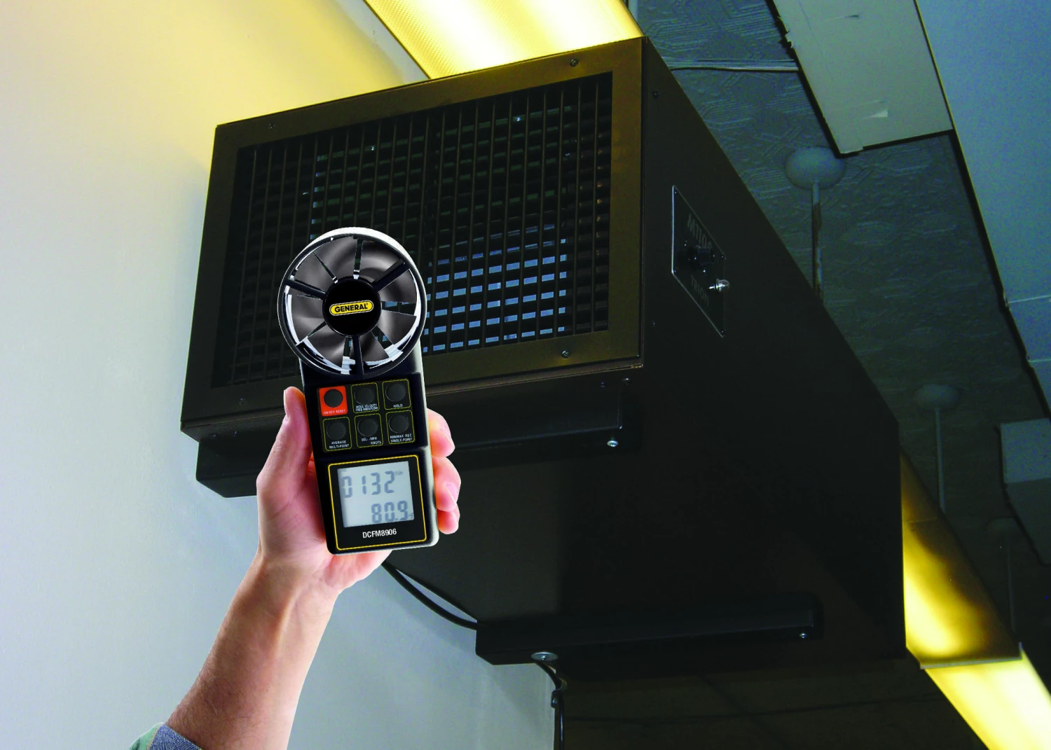 The one-piece #DCFM8906 anemometer is ideal for measuring the airflow speed and volume output of exhaust fans and blowers. An optional software-hardware package turns the instrument into a PC data logger.
