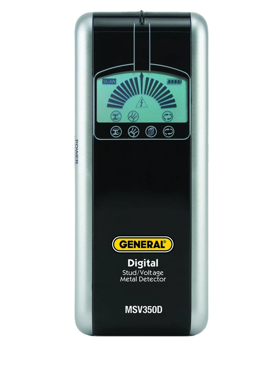 The #MSV350D can locate wood studs/joists and metal cables/pipes behind walls or even inside furniture. It can also make the work of contractors, carpenters, plumbers, electricians and demolition crews safer by detecting energized AC outlets and “live” wires behind walls or ceilings.