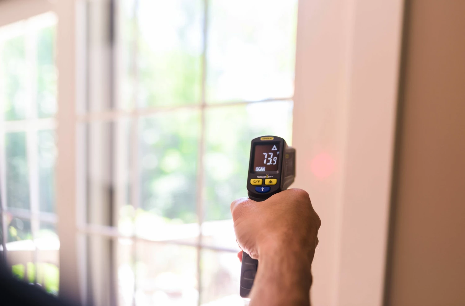 The ToolSmart™ Infrared Thermometer makes identifying hot or cold spots in your home easy. These areas are signs that energy is being wasted especially around older windows and doors. With the free ToolSmart™ app you can apply temperature readings to images for quick reference, perfect for indicating where weather-stripping and insulation is most needed. Stop wasting energy, save money, and ensure that your family stays comfortable in your home.