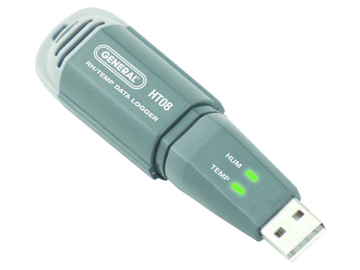 The #HT08 can log the ambient temperature and relative humidity (RH) of an environment for days, weeks or months. Included PC software can also calculate and log dew point and wet bulb temperatures, and absolute humidity levels in units of grains per pound (GPP) or g/kg. The #HT08 is ideal for water damage restoration and process control as well as environmental monitoring.