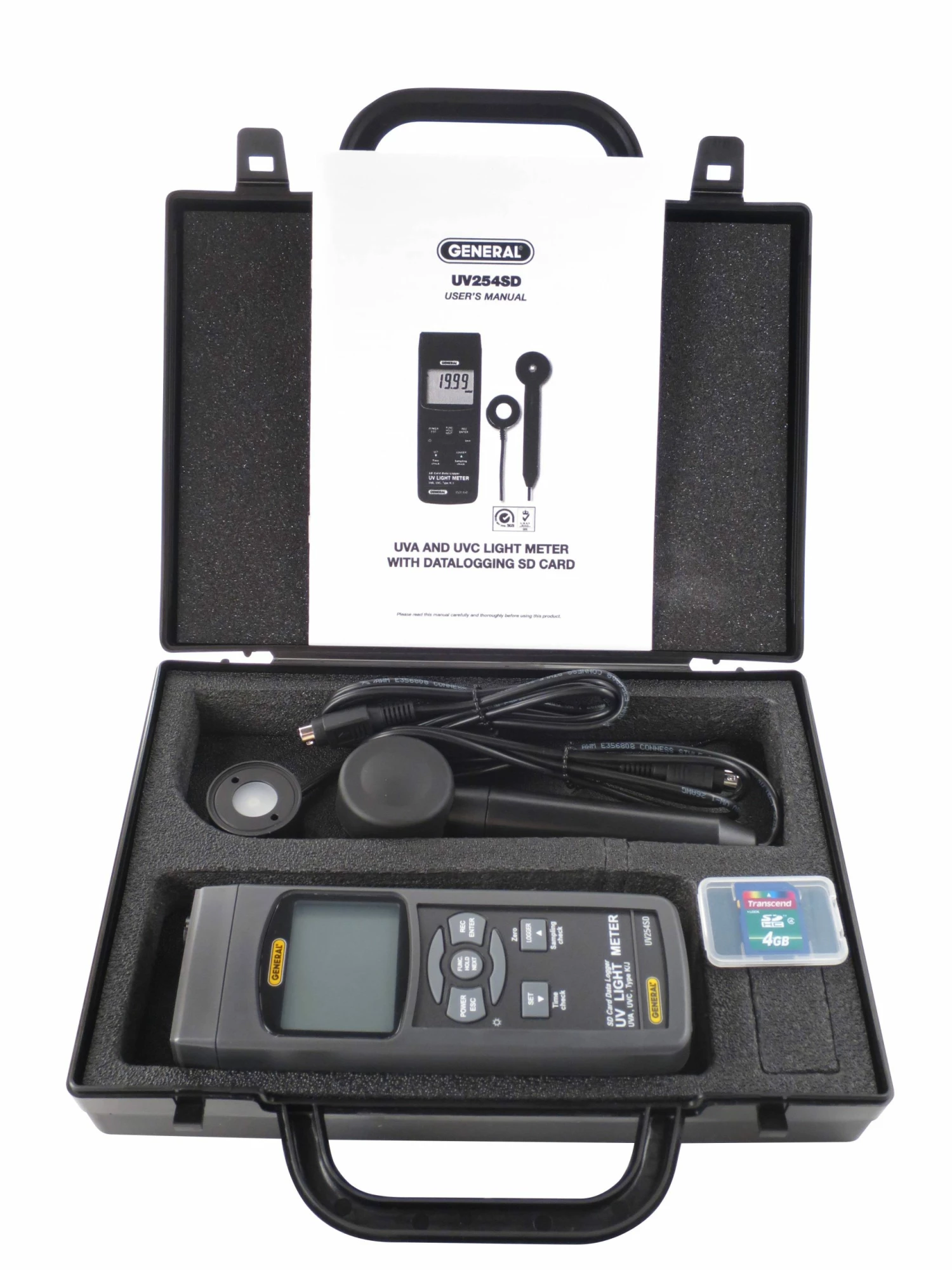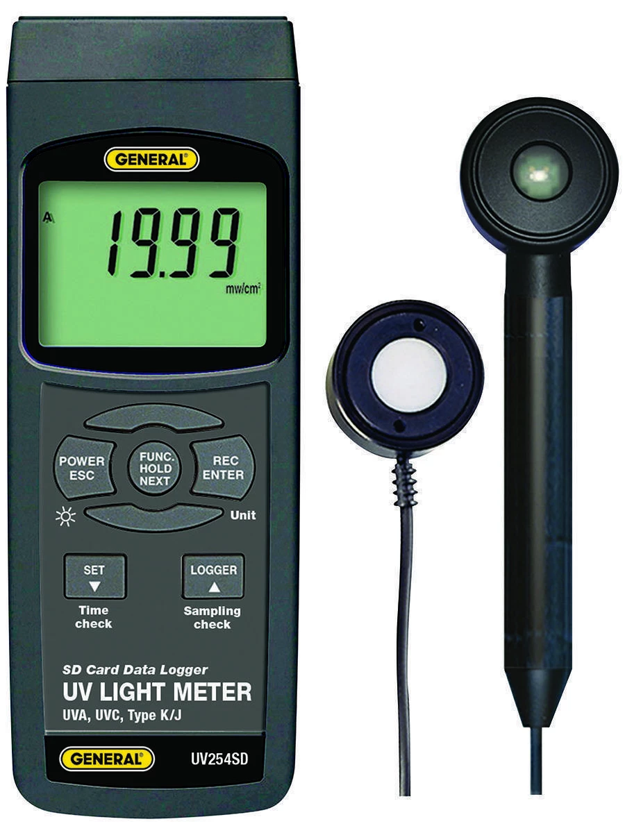 The #UV254SD light level meter can measure and log UVA and UVC light intensity values. Applications include welding, UV food sterilization, photochemical matching, erasing memory chips, exposing photoresists, and curing of inks, adhesives and coatings.