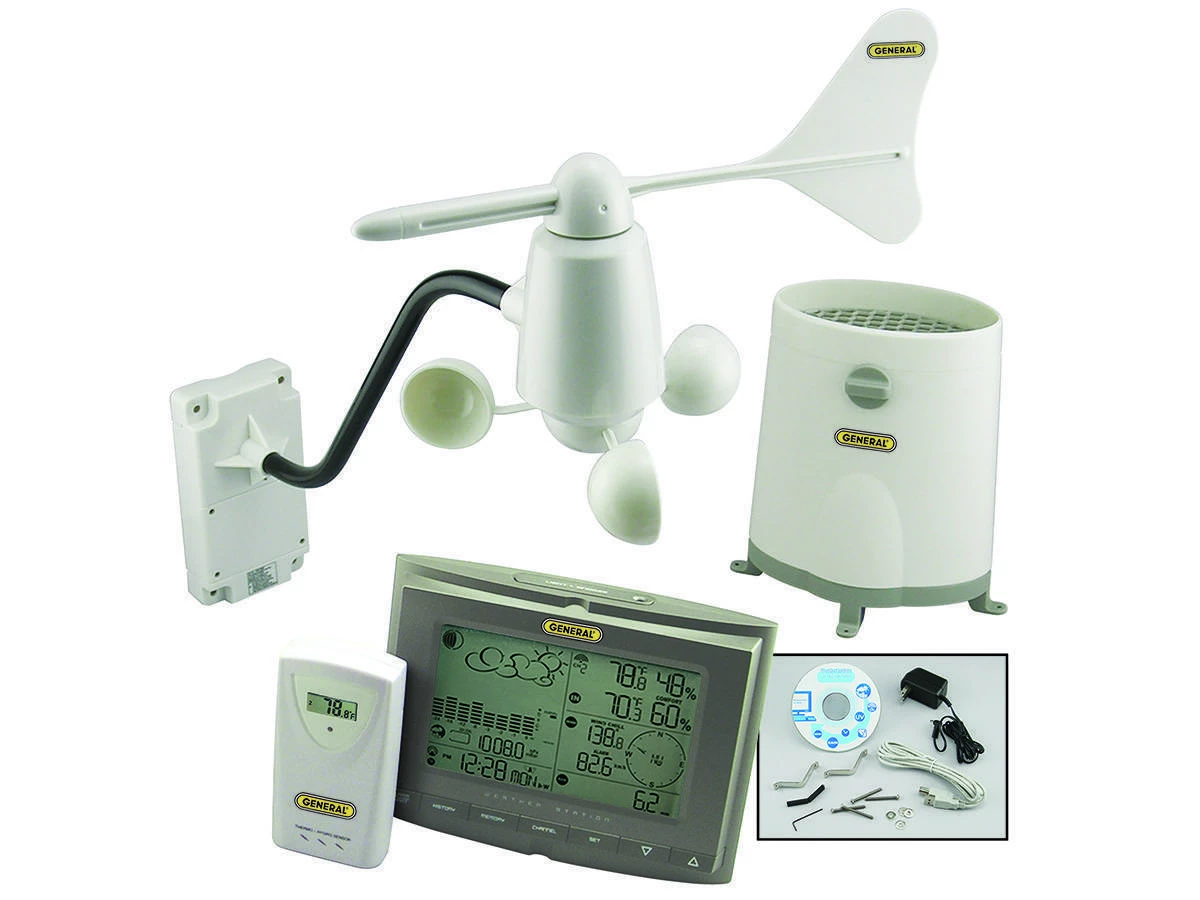 The #WS831DL Wireless Data Logging Weather Station is ideal for pro-am forecasters. It measures and documents barometric pressure, rainfall, temperature, relative humidity (RH), and wind speed and direction. And its display station can receive temperature and RH readings from up to five wireless sensors located within 100 ft.